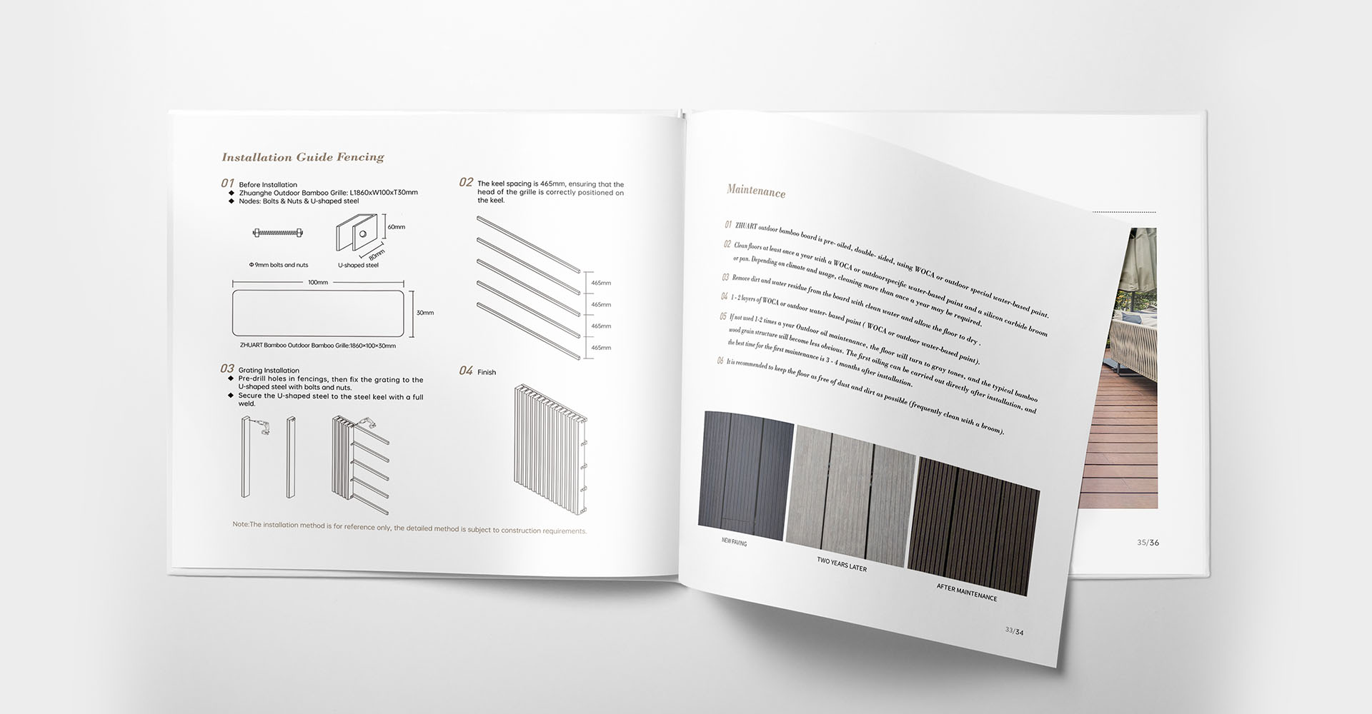 浙江莊禾竹業科技有限公司是一家集研發、生產、銷售于一體的科技型企業,公司自有2家新型戶外景觀竹材生產工廠生產銷售戶外竹材,公司委托石特設計宣傳冊。