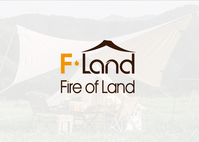 通過“F.Land"與戶外露營帳篷的外形提取設(shè)計(jì),組合。元素中的“l(fā)and"中文意思為“陸地”,帳篷作為戶外露營重要的工具,在英文“l(fā)and"上方加入帳篷元素,兩者巧妙結(jié)合,體現(xiàn)出了戶外露營者在陸地上搭建帳篷的這一特點(diǎn),突出品牌的定位一戶外露營。
