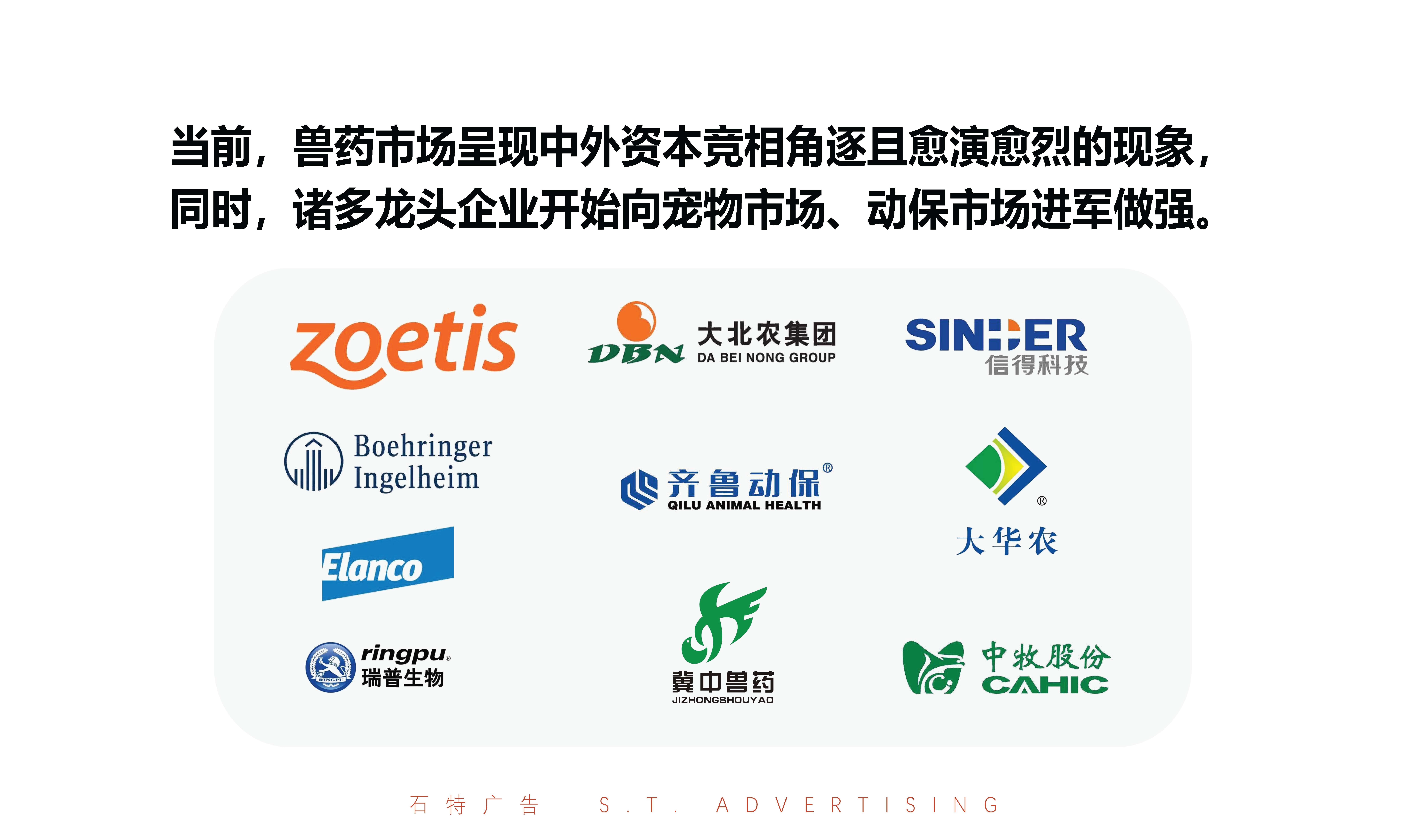 對耐斯康品牌在市場中的競爭對手進行了調查分析后得知:當前,獸藥市場呈現中外資本競相角逐且愈演愈烈的現象, 同時,諸多龍頭企業開始向寵物市場、動保市場進軍做強。