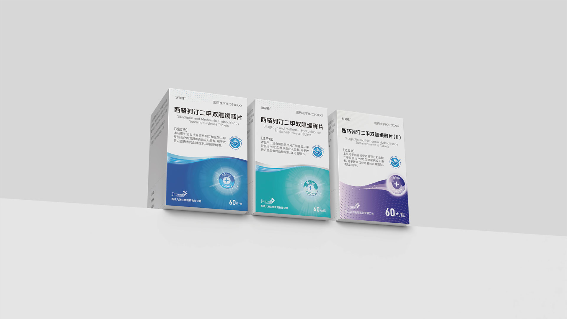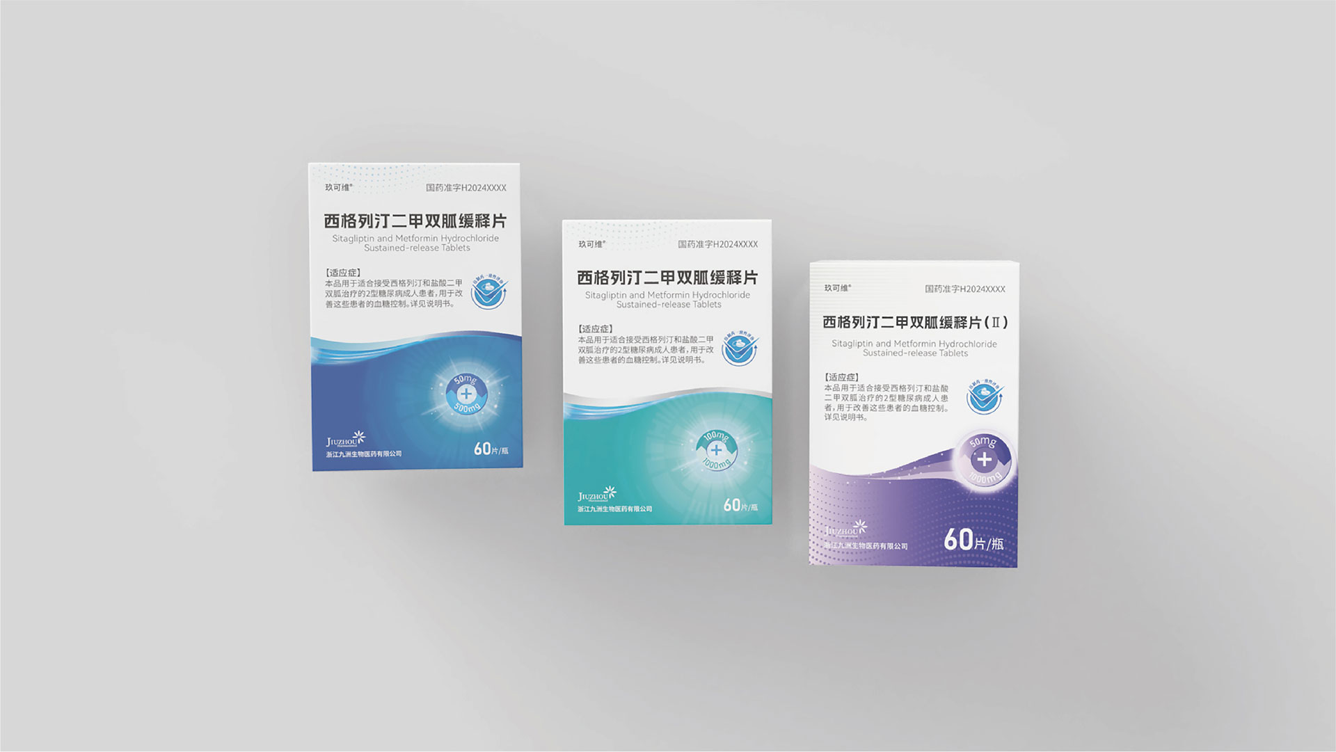 浙江九洲生物醫藥有限公司是一家專注于糖尿病治療領域的創新藥企,其核心產品西格列汀二甲雙胍緩釋片(II)致力于為2型糖尿病患者提供更安全、便捷的治療方案。石特大健康團隊受邀為其設計藥品包裝,旨在通過專業設計提升產品辨識度、傳遞品牌價值,并滿足藥品包裝的合規性與功能性需求。