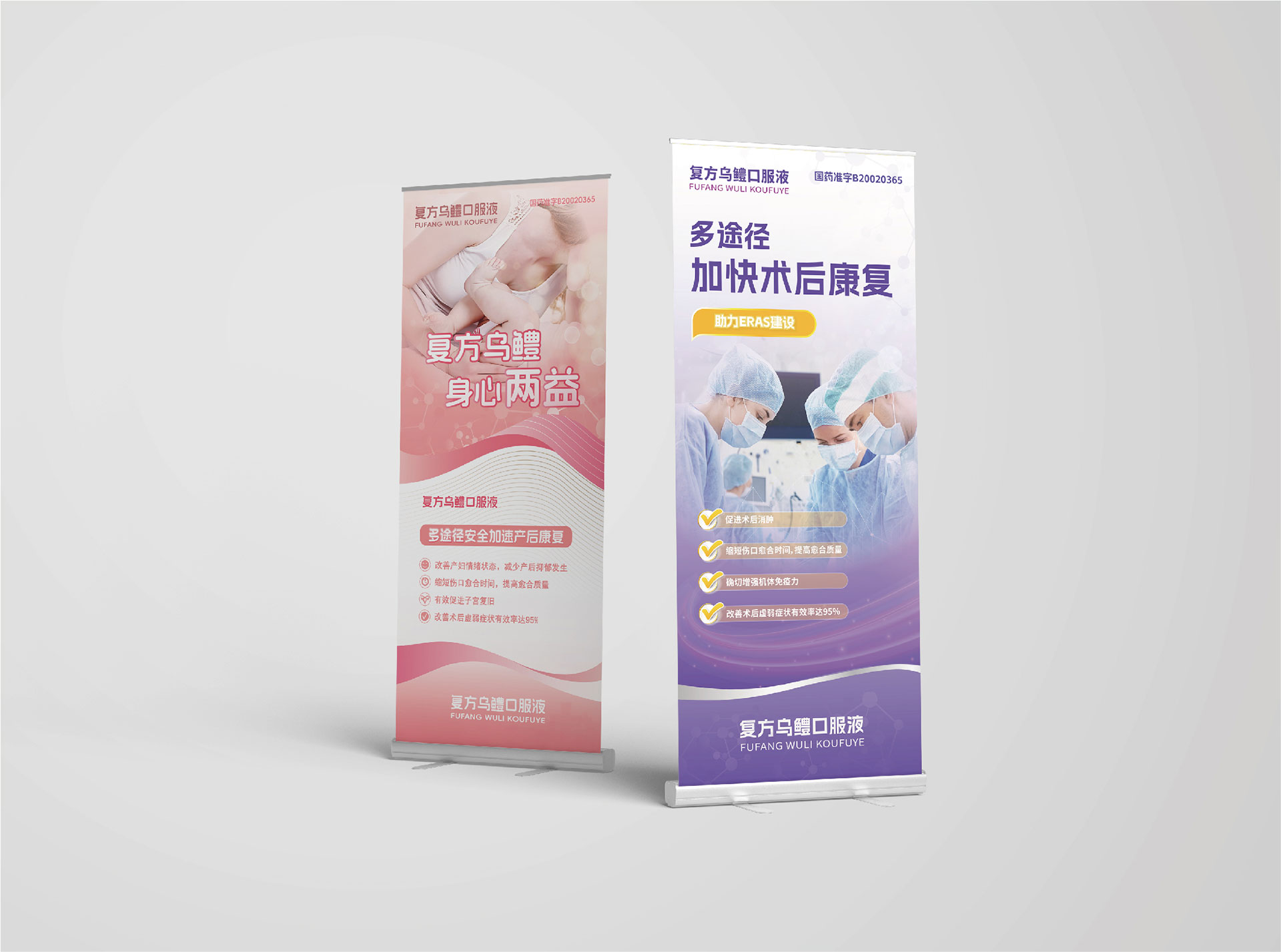 1. 設(shè)計(jì)策略:科學(xué)+人文,打造專(zhuān)業(yè)與溫度兼具的視覺(jué)語(yǔ)言 核心定位:以“科學(xué)驗(yàn)證+人文關(guān)懷”為主線,突出產(chǎn)品功效與品牌信任感。 視覺(jué)風(fēng)格:采用藍(lán)綠色調(diào),象征健康與活力,搭配中醫(yī)元素(如草本圖案),強(qiáng)化產(chǎn)品天然屬性。 信息分層:通過(guò)圖標(biāo)、數(shù)據(jù)圖表等形式,將復(fù)雜的藥理信息可視化,提升閱讀體驗(yàn)。 2. DA折頁(yè)設(shè)計(jì):精準(zhǔn)觸達(dá),高效傳遞產(chǎn)品價(jià)值 封面設(shè)計(jì):以產(chǎn)品核心功效“增強(qiáng)免疫”為標(biāo)題,搭配鳥(niǎo)鱧形象插畫(huà),吸引目標(biāo)受眾注意。 內(nèi)頁(yè)布局: 產(chǎn)品介紹:清晰展示成分、功效、適用人群等信息,突出“中藥制劑”的安全性。 臨床數(shù)據(jù):引用權(quán)威機(jī)構(gòu)認(rèn)證數(shù)據(jù),增強(qiáng)可信度。 使用場(chǎng)景:通過(guò)場(chǎng)景化插圖(如家庭、辦公場(chǎng)景),拉近與消費(fèi)者的距離。 工藝選擇:采用環(huán)保紙張與啞光覆膜工藝,提升質(zhì)感與耐用性。 3. 易拉寶設(shè)計(jì):場(chǎng)景化營(yíng)銷(xiāo),強(qiáng)化品牌記憶 主視覺(jué):以“免疫力提升”為核心主題,搭配動(dòng)態(tài)線條與產(chǎn)品實(shí)物圖,營(yíng)造視覺(jué)沖擊力。 內(nèi)容策劃: 核心賣(mài)點(diǎn):突出“天然成分”“科學(xué)驗(yàn)證”“便捷服用”三大優(yōu)勢(shì)。 品牌故事:簡(jiǎn)述品牌歷史與研發(fā)實(shí)力,增強(qiáng)信任感。 促銷(xiāo)信息:結(jié)合節(jié)日或活動(dòng),設(shè)計(jì)限時(shí)優(yōu)惠內(nèi)容,促進(jìn)轉(zhuǎn)化。 尺寸與材質(zhì):采用80cm×200cm標(biāo)準(zhǔn)尺寸,搭配高精度噴繪,確保畫(huà)面清晰度。 4. 系列化延展:統(tǒng)一視覺(jué),強(qiáng)化品牌識(shí)別 視覺(jué)統(tǒng)一:DA折頁(yè)與易拉寶采用一致的色彩體系、字體風(fēng)格與圖形元素,形成品牌記憶點(diǎn)。 多場(chǎng)景應(yīng)用:設(shè)計(jì)適用于藥店、展會(huì)、醫(yī)院等不同場(chǎng)景的版本,滿足多樣化需求。 數(shù)字化適配:提供電子版折頁(yè)與易拉寶設(shè)計(jì),便于線上傳播與分享。