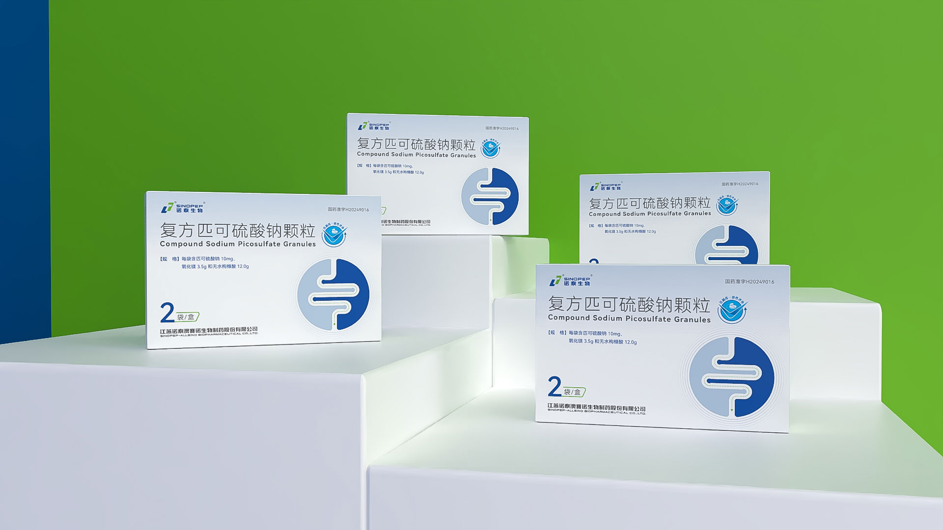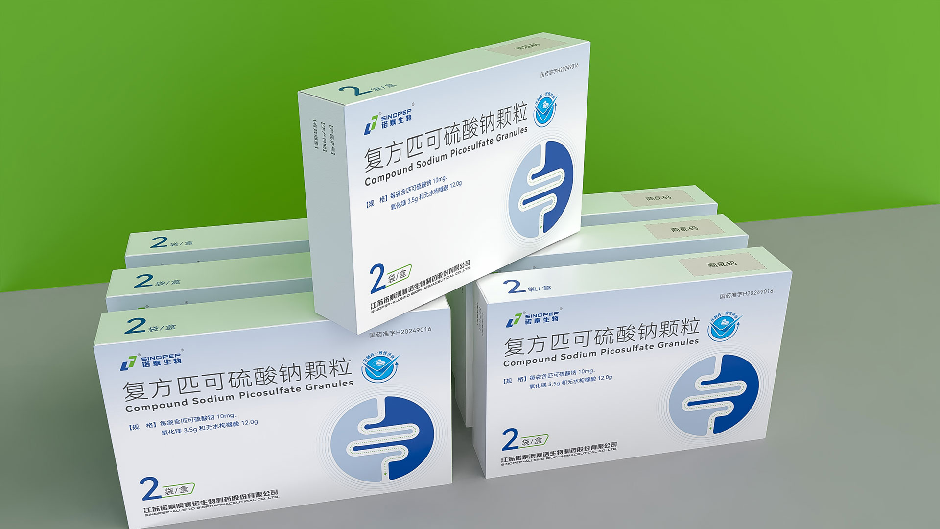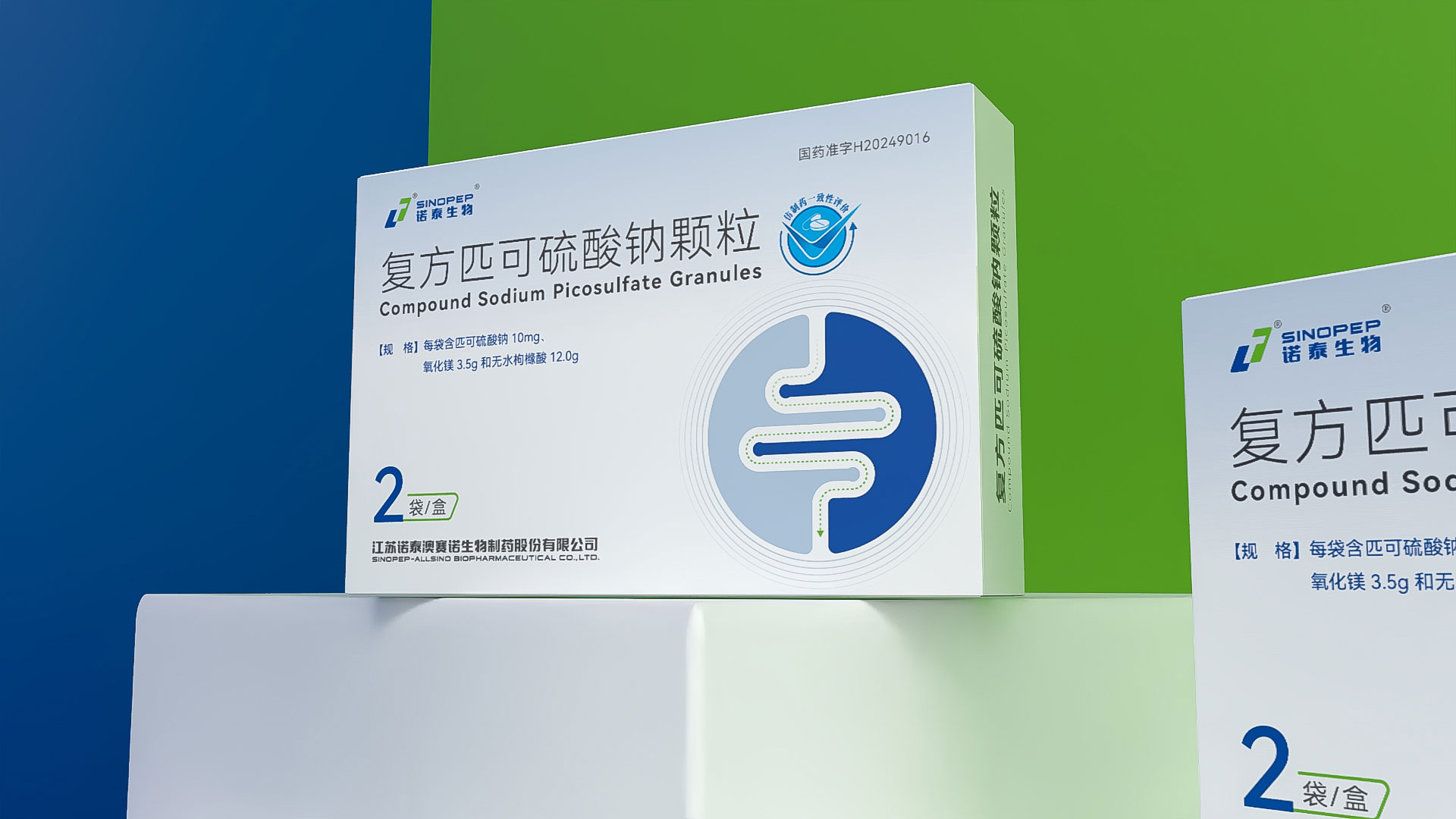 江蘇諾泰澳賽諾生物制藥股份有限公司的復方匹可硫酸鈉顆粒(規格:每袋16.1g,含匹可硫酸鈉10mg、氧化鎂3.5g、無水枸櫞酸12.0g,2袋/盒)是一款用于放射檢查、內鏡檢查或手術前腸道清潔的化學3類藥品。為提升產品市場競爭力及用戶信賴度,石特大健康團隊為其量身定制了專業化、合規化、人性化的藥品包裝設計方案,涵蓋結構設計、裝潢設計、安全防護及物流適配等多維度需求,全面滿足藥品特性、法規要求及終端用戶體驗。