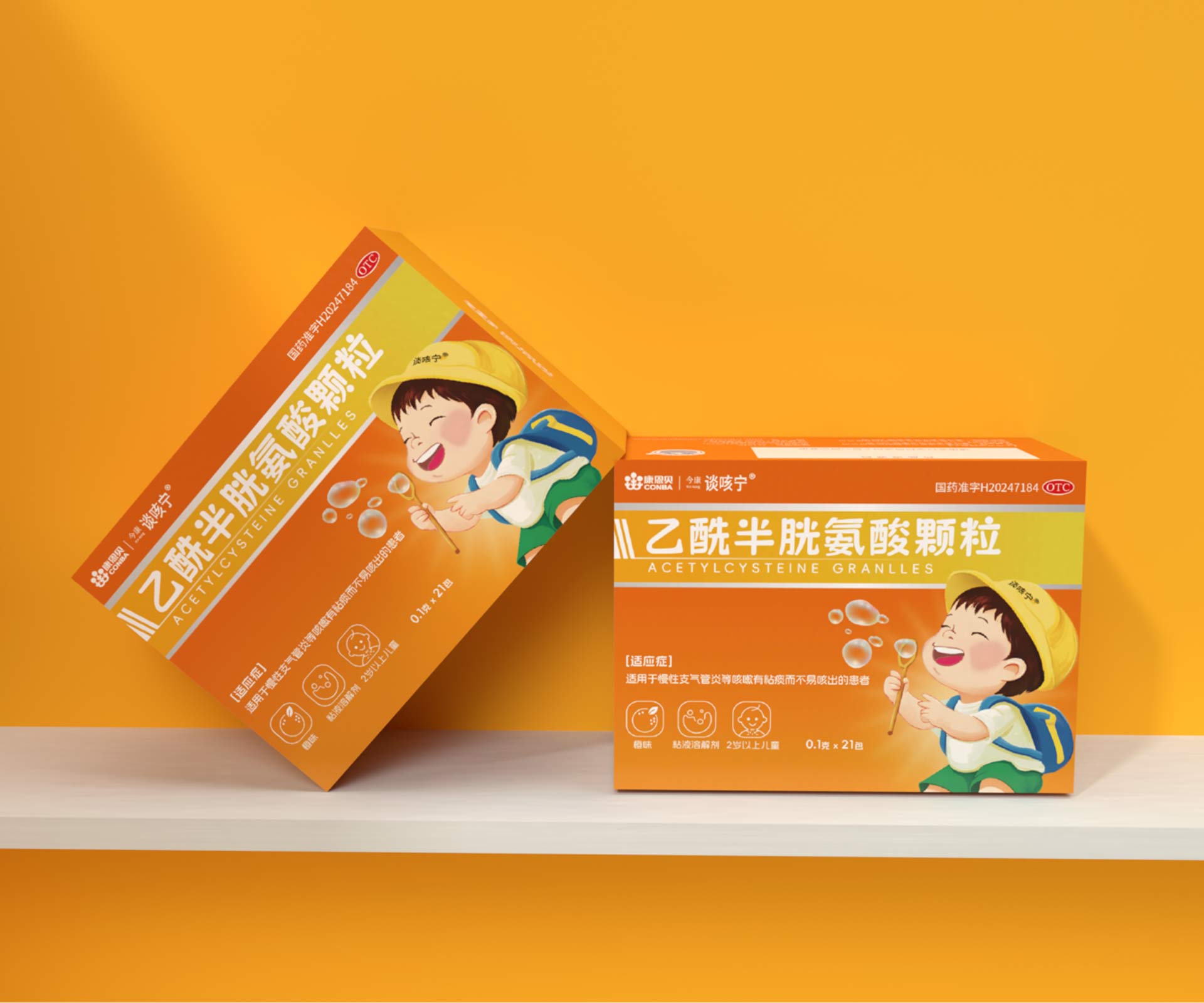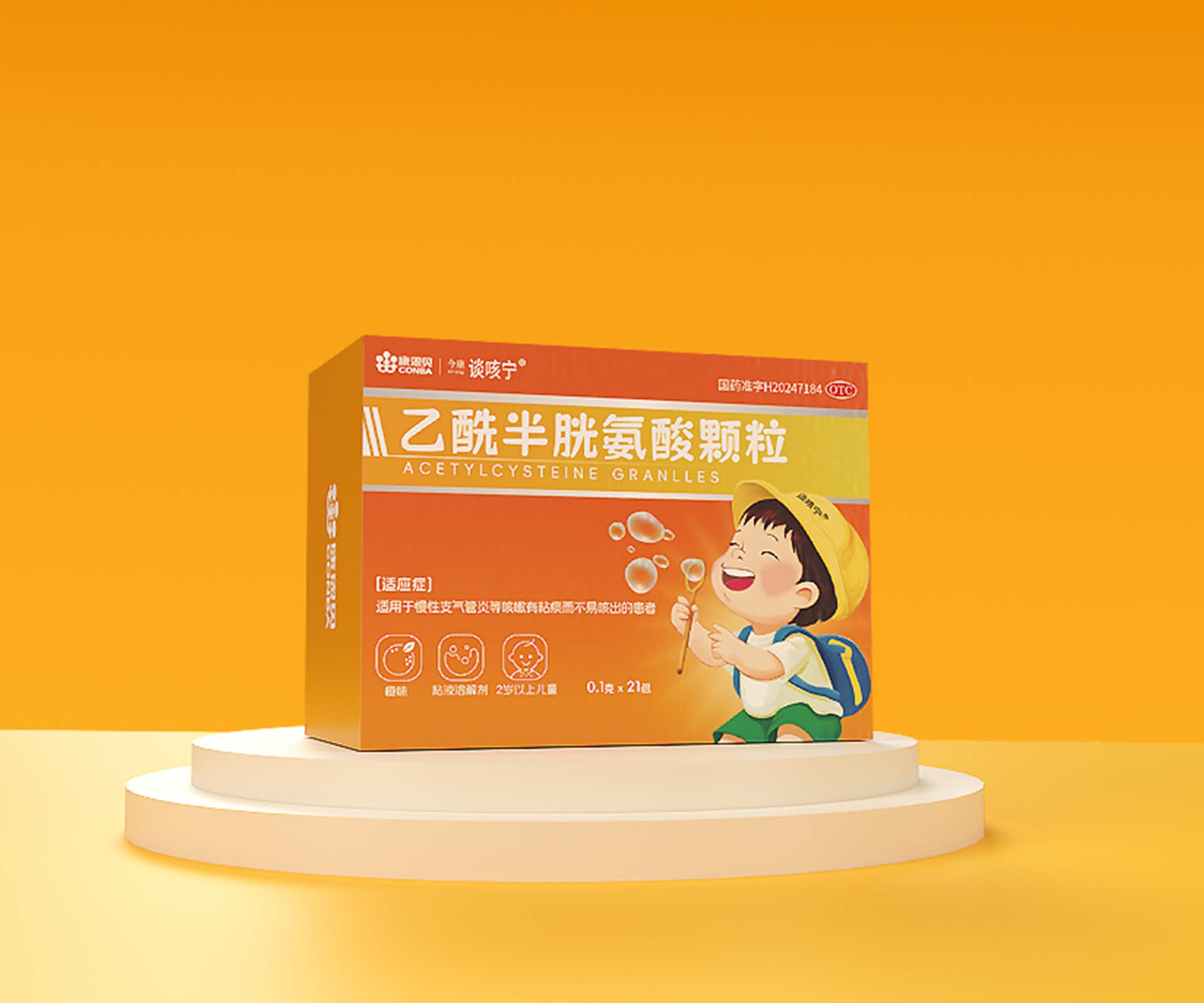 浙江金康醫藥旗下乙酰半胱氨酸顆粒,聚焦2 歲以上兒童祛痰止咳需求,面臨三大設計挑戰:需傳遞 “權威指南推薦(兒童祛痰止咳治療 )、臨床數據支撐(減少急性支氣管炎風險 )” 的醫療價值,強化家長信任:突破傳統藥品的冰冷感,通過視覺設計營造 “好喝、安全、親和” 的氛圍,降低兒童用藥抵觸;信息高效傳遞在包裝、詳情頁、單頁中,分層傳遞 “核心功效(強效祛痰 )、安全優勢(口服安全 )、使用場景(兒童支氣管炎等 )”,適配藥店終端、線上推廣等多元渠道。