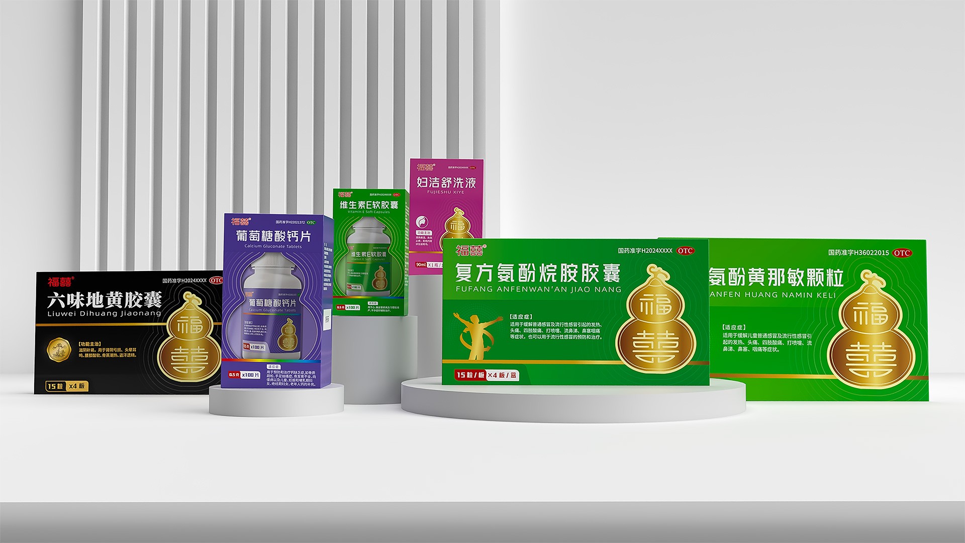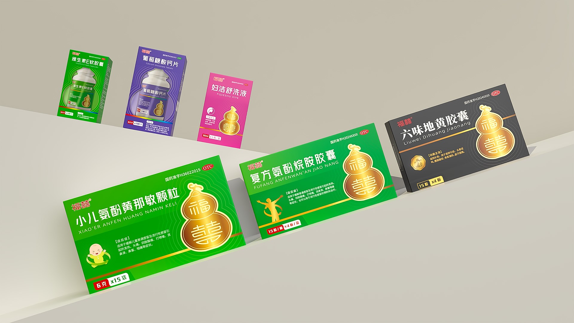 系列化產(chǎn)品包裝設(shè)計:針對福囍醫(yī)藥的核心產(chǎn)品線,進(jìn)行了系統(tǒng)化的包裝設(shè)計。在確保合規(guī)性的基礎(chǔ)上,突出產(chǎn)品特色與賣點,通過統(tǒng)一的視覺語言提升產(chǎn)品陳列的整體美感與品牌檔次,助力終端銷售。